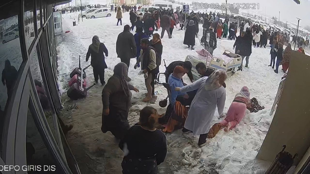 Öte yandan havanın soğuk olması nedeniyle deprem sonrası battaniye almak için tekrar hastaneye giren bazı kişilerin artçı sarsıntıya yakalandığı anlar da kayıtlara geçti.