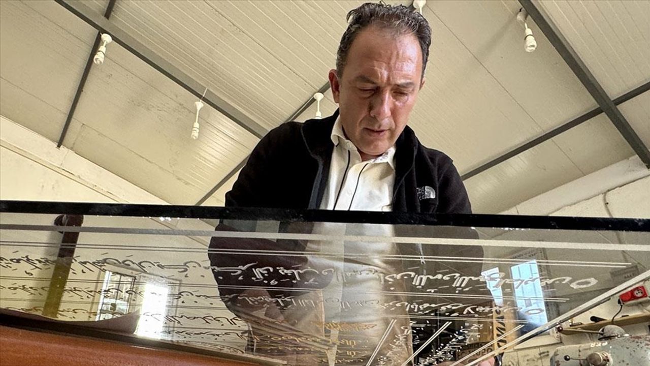 Makine teknolojisi öğretmeni İbrahim Aksoy, 7 ay süren çalışmayla Ahi Sancağı'nı kazıma yöntemiyle cama işledi.