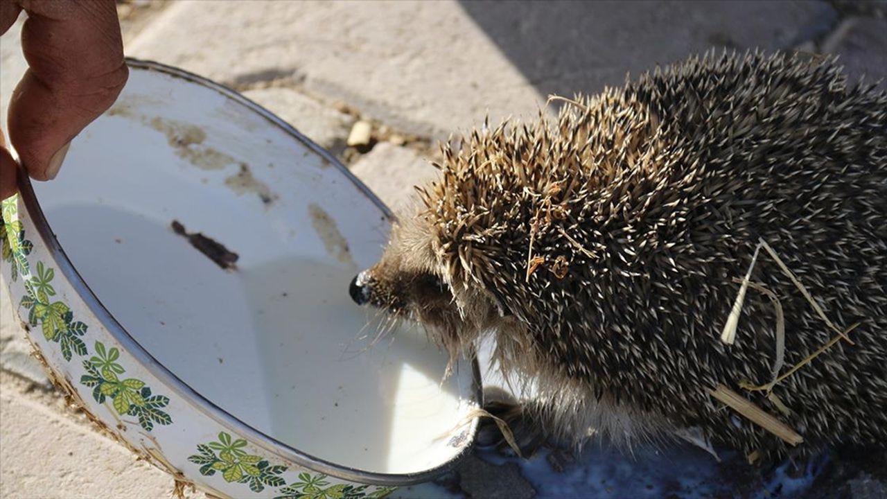 Ne yiyip ne içtiğini bilmediği kirpiyi önce hayvanlara verdiği arpanın ezmesiyle beslemeye çalıştığını anlatan İnce, 'Yemi beğenmedi. Daha sonra kedilere verdiğim sütten bir miktar kirpiye uzattım. Sütü iştahla içmeye başladı.' dedi.