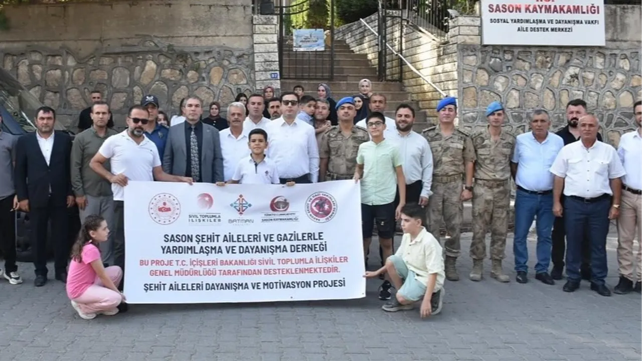Batman’ın Sason ilçesinde, İçişleri Bakanlığı Sivil Toplumla İlişkiler Genel Müdürlüğü tarafından desteklenen ve Batman Valiliği ile Sason Şehit Aileleri ve Gazilerle Yardımlaşma Derneği iş birliğiyle yürütülen “Şehit Aileleri Dayanışma ve Motivasyon Projesi” kapsamında düzenlenen kültürel gezi için şehit aileleri uğurlandı.BATMAN (İGFA) - Batman Sason'daki proje kapsamında Şanlıurfa, Gaziantep ve Nevşehir illerine yapılacak geziye katılacak 40 kişilik kafile, Sason Kaymakamlığı önünde düzenlenen programla yolcu edildi.