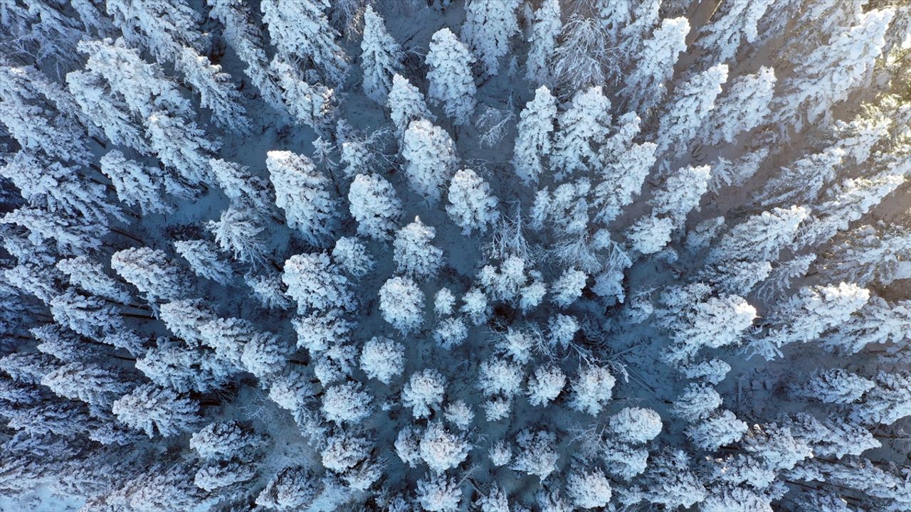 Kış mevsiminin tüm güzelliklerini sergileyen dağların beyaz örtüyle buluşması, dron ile havadan görüntülendi.