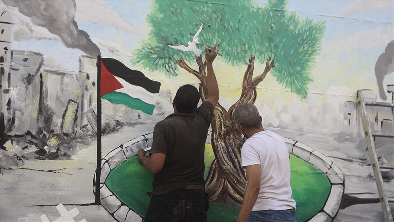 GAZZE (AA) - BM İklim Değişikliği Çerçeve Sözleşmesi 30. Taraflar Konferansı (COP30) dün Brezilya'nın kuzeyindeki Para eyaletinin başkenti Belem'de başladı. Dünyanın bir ucunda İklim Zirvesi yapılırken Filistinli sanatçılar ile aktivistler de İsrail'in Gazze'de uyguladığı ekokırıma dikkat çekmek için boya ve fırçaya sarıldı.
