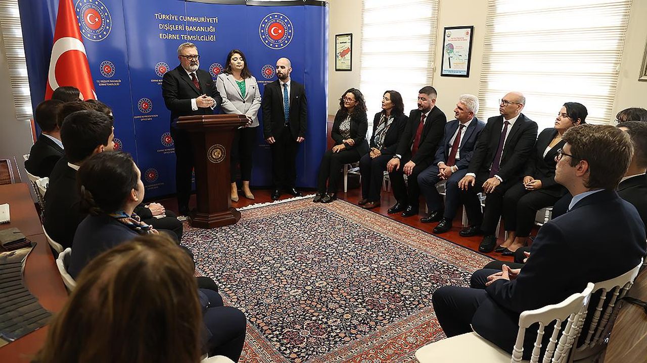 Edirne Valisi Yunus Sezer, komşu ülke diplomat adaylarını Valilik'te kabul etti.