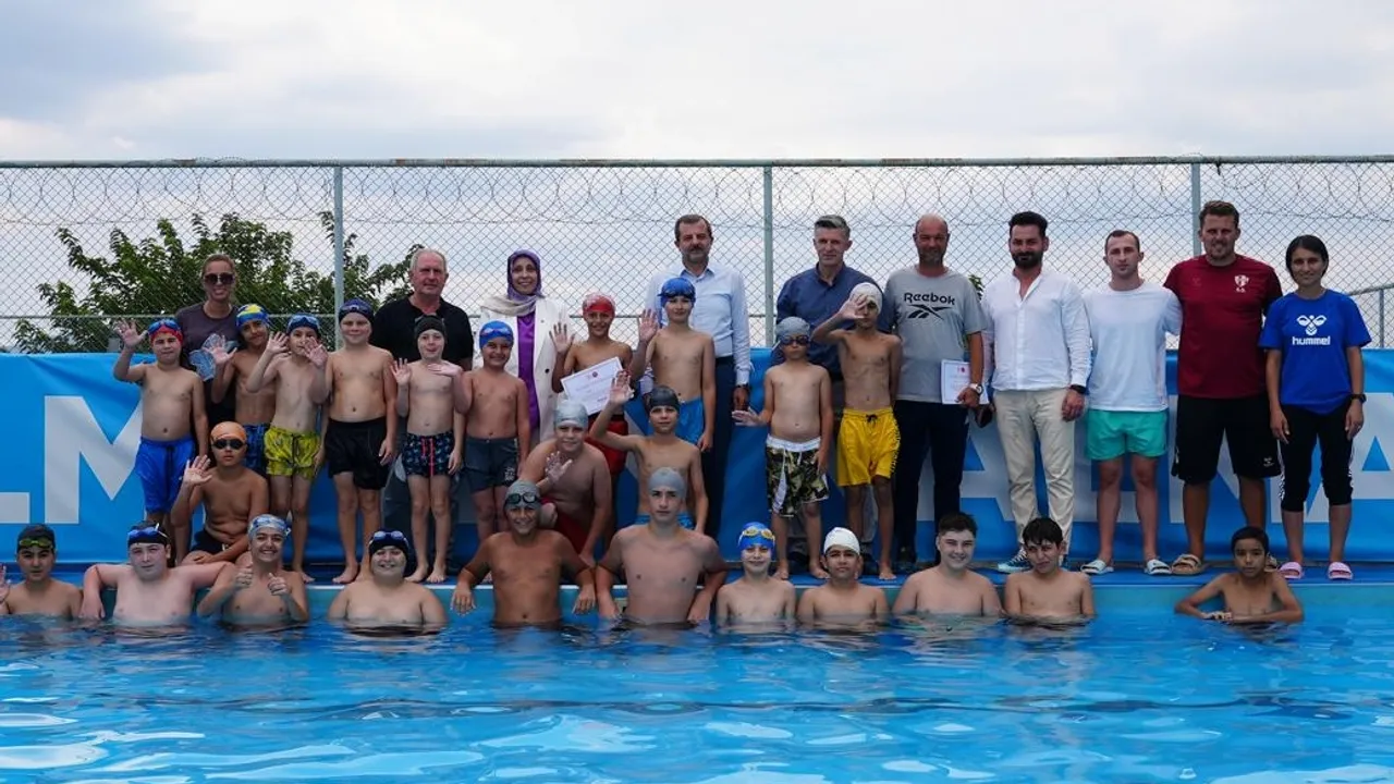 Bursa'da Gürsu Belediyesi'nin her yıl yaz döneminde açtığı havuz sezonunda eğitim gören minik yüzücüleri, bu yıl da sertifika dağıtarak mezun etti.BURSA (İGFA) - Gençlik ve Spor Bakanlığı’nın ‘Yüzme Bilmeyen Kalmasın’ projesi kapsamında, ilçe genelinde kayıtları toplayan Gürsu Belediyesi, uzman eğitmenler eşliğinde yüzlerce çocuğu yüzme sporu ile buluşturdu.