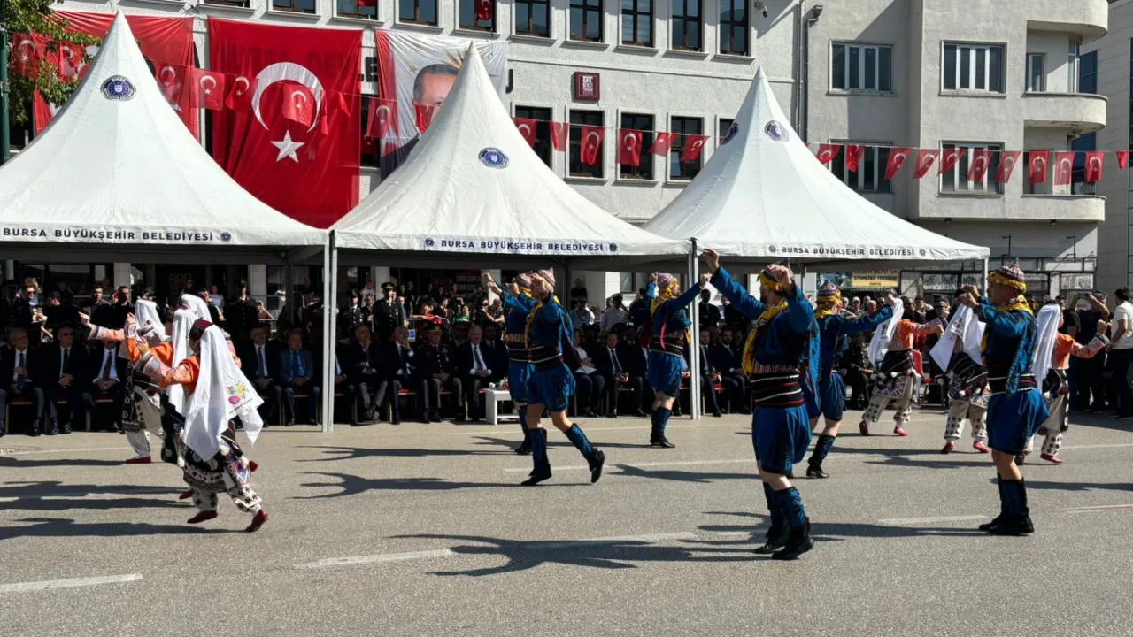 Bursa Valiliği öncülüğünde Tophane Surlarından Heykel Atatürk Anıtı’na uzanan kortej yürüyüşüyle başlayan etkinlikler, anıt önünde çelenk sunma töreniyle devam etti.
