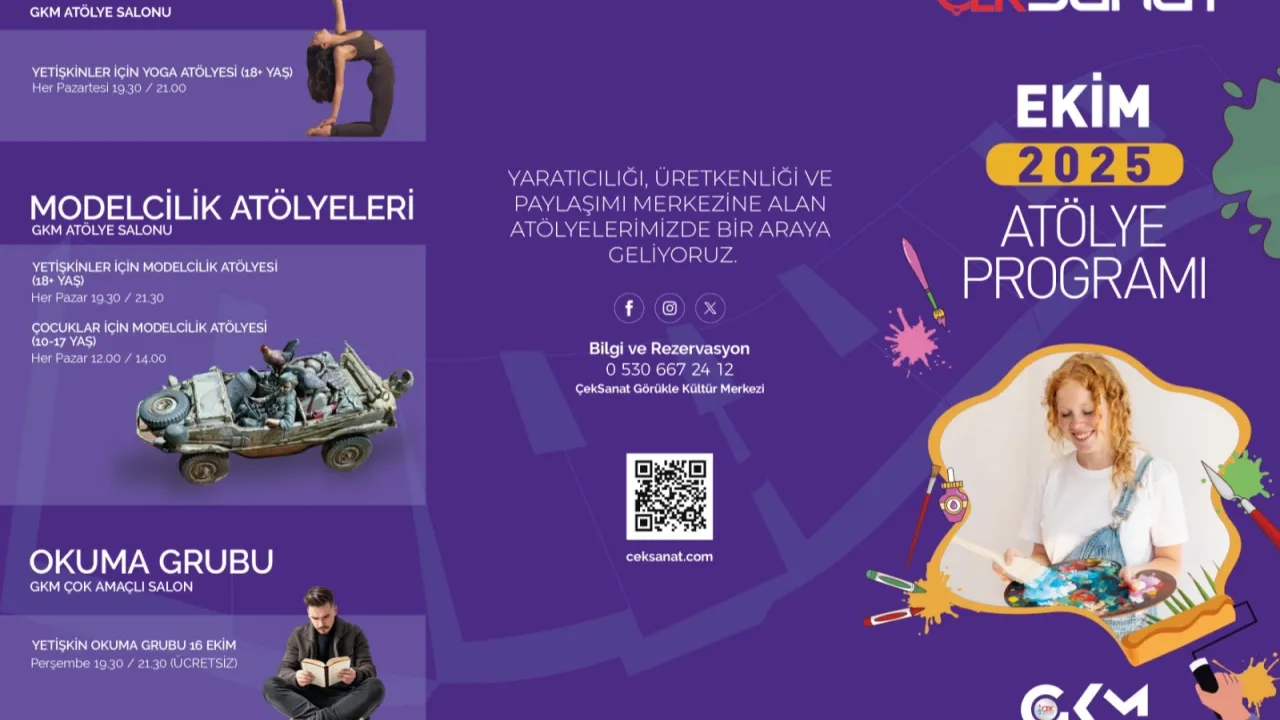 Sezon boyu sürecek ÇEKSANAT çocuk, genç ve yetişkin atölyeleri Ekim ayında Görükle Kültür Merkezi’nde (GKM) başlıyor. Sanatın birleştirici ve iyileştirici gücünden yola çıkan ÇEKSANAT, uzman eğitmenler eşliğinde hazırlanan atölye programlarını Bursa GKM’de hayata geçiriyor.