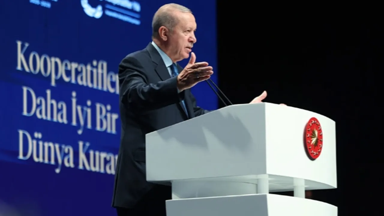 “6,5 milyonu aşkın ortağı olan 62 bin kooperatifimiz var; bu, ekonomik hayatımız için kıymetli bir kazanım" diyen Cumhurbaşkanı Erdoğan, "AB’de 165 milyonu aşkın ortağı ve 250 bin kooperatif varken, bizde arzu edilen seviyede değiliz. Kooperatifler, tarımdan sanayiye, kadın girişimciliğinden enerjiye kadar yerel kalkınmanın temel aktörü hâline geldi. Son yıllarda dünyada da ön plana çıkıyorlar” diye konuştu.