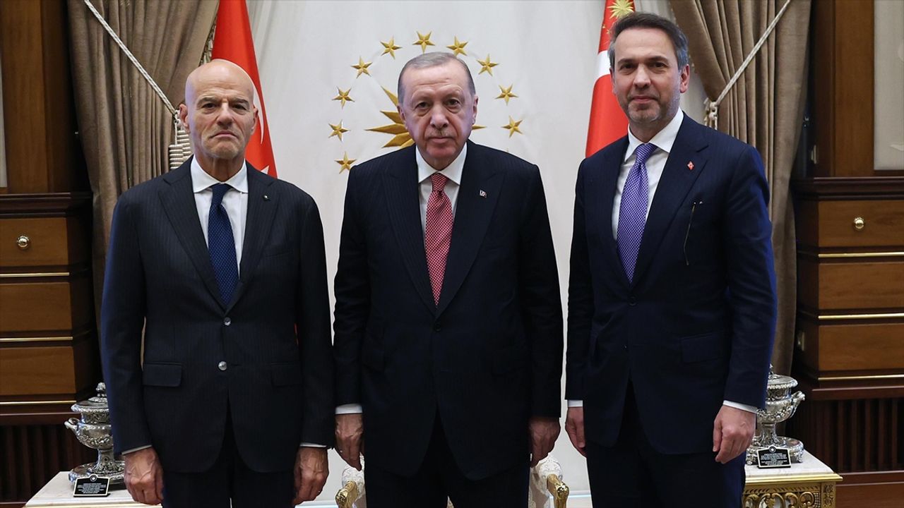 ANKARA (AA) - Erdoğan, Cumhurbaşkanlığı Külliyesi'nde, İtalya Milli Hidrokarbon Ajansı Başkanı Descalzi'yi kabul etti.
