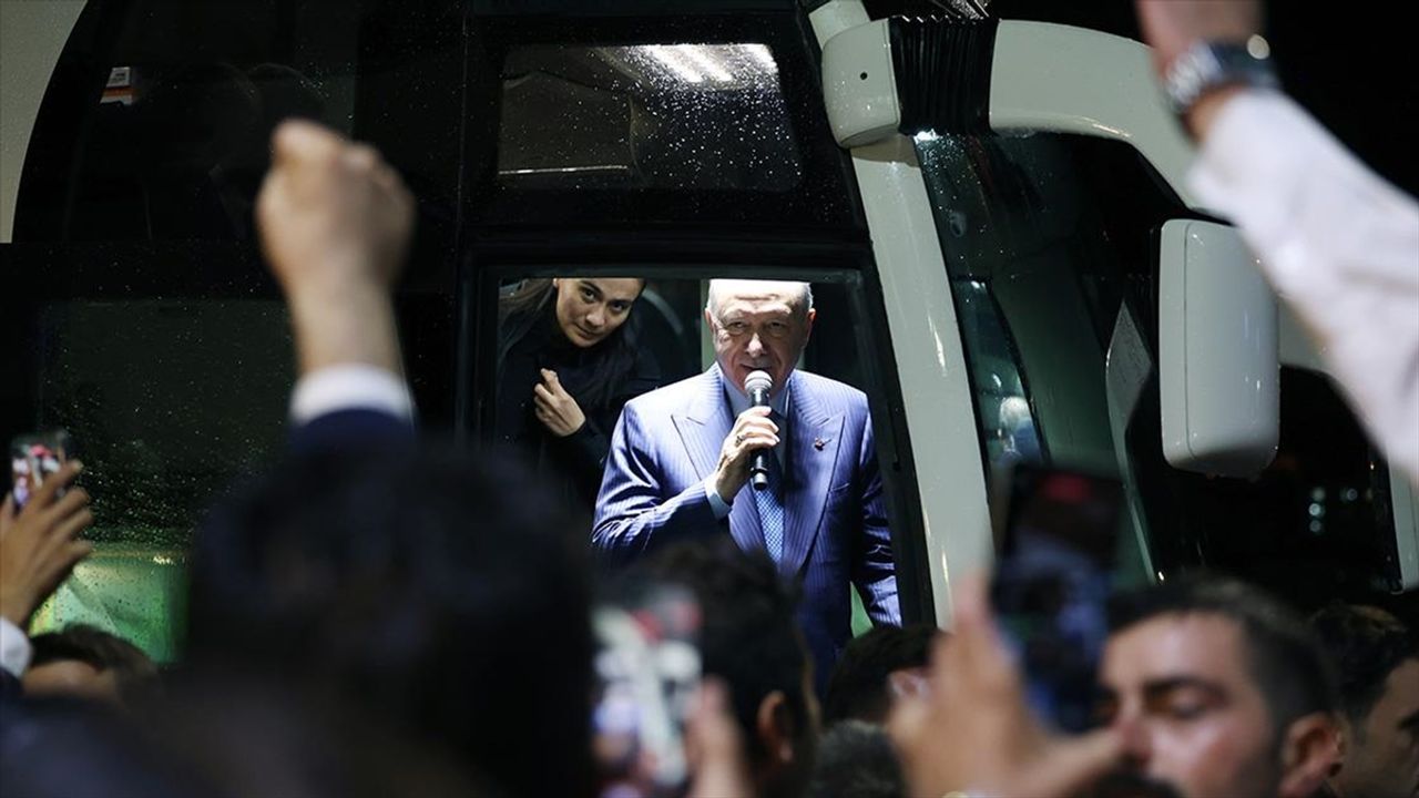 ANKARA (AA) - Merkez Camisi önünde kendisini bekleyen hemşehrilerini eşi Emine Erdoğan ile selamlayan Cumhurbaşkanı Erdoğan, makam aracından inerek, otobüse geçti.