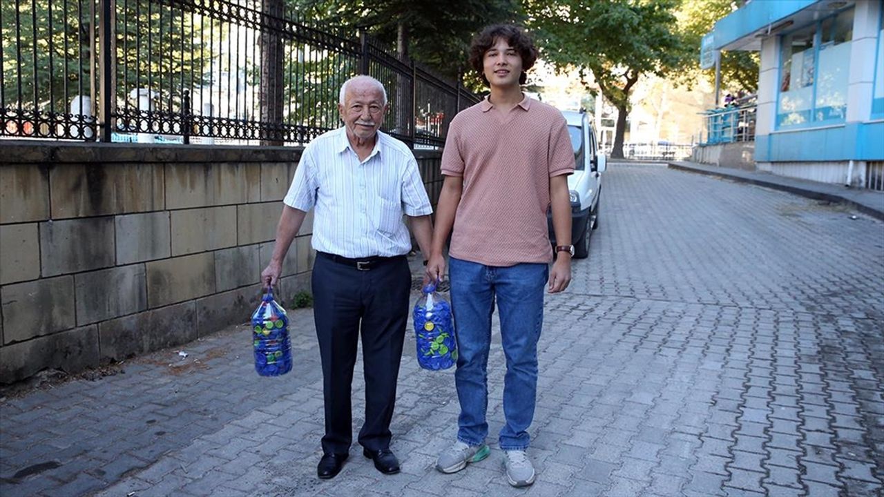 KASTAMONU (AA) - Lise öğrencisi Kaan Kapucuoğlu, bir televizyon programından etkilenerek fiziksel engelli bireylere tekerlekli sandalye alabilmek için mavi kapak toplamaya başladı. Torununun bu davranışından etkilenen Gülce de ona destek olmaya başladı.