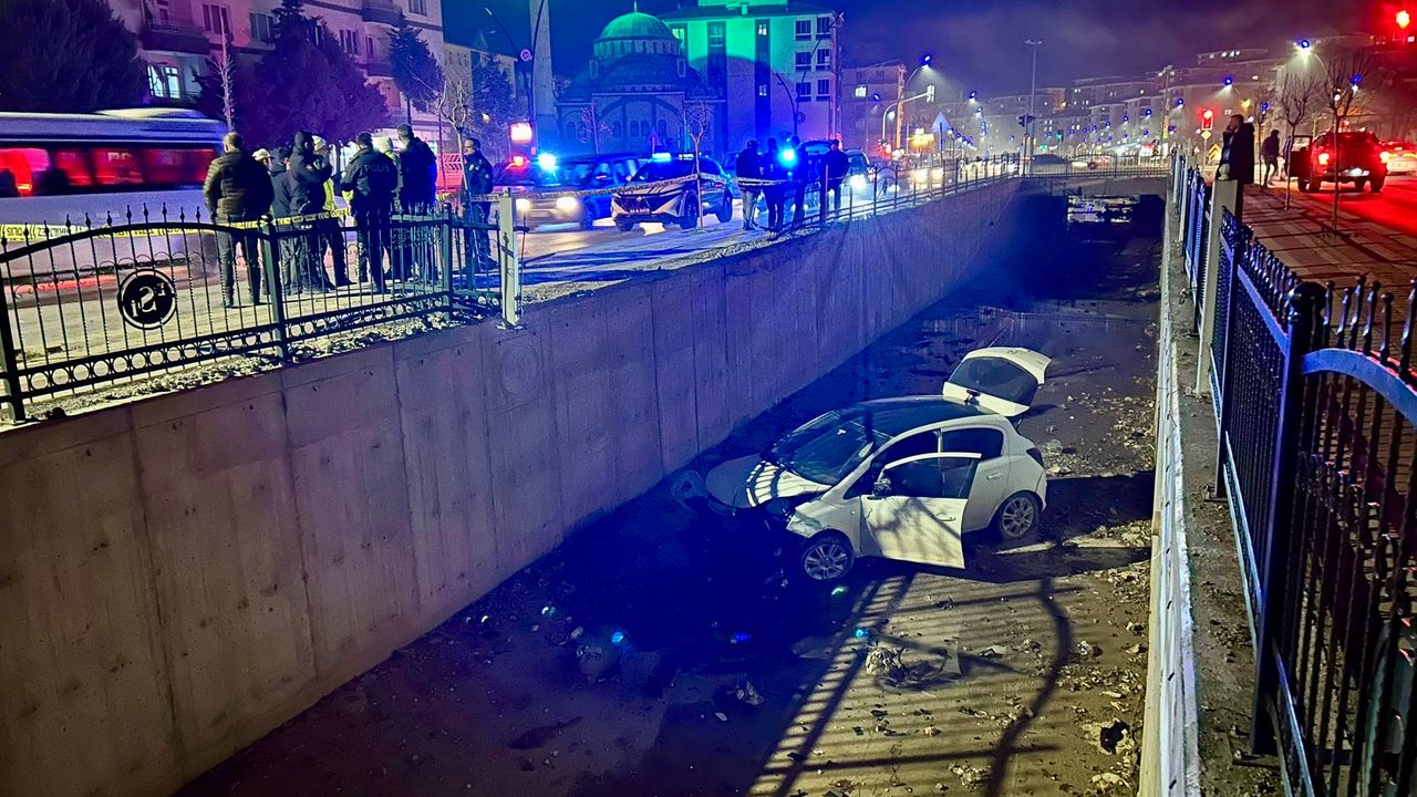 Malatya'nın Battalgazi ilçesine bağlı Paşaköşkü Mahallesi Gönültaş Caddesi üzerinde meydana gelen trafik kazasında, sürücüsünün direksiyon hakimiyetini kaybettiği otomobil yoldan çıkarak sulama kanalına uçtu.