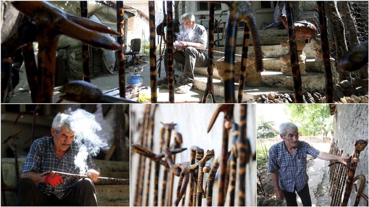 KIRKLARELI (AA) - Kırklareli'nde yaşayan 71 yaşındaki Cemal Olt, doğadan topladığı ağaç dallarını, çeşitli hayvan figürleri işleyerek bastona dönüştürüyor.