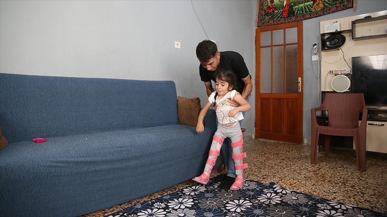 Buradaki özel bir rehabilitasyon merkezinde fizik tedavi gören Yağmur, yanından ayrılmayan babasının desteğiyle ayağa kalkabiliyor.