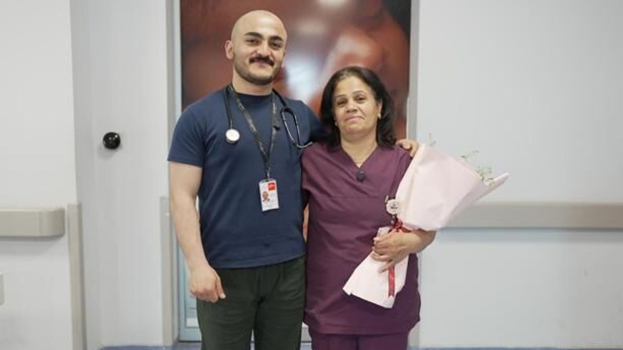 Malatya'da pratisyen hekim Buğra Şekerci, aynı hastanede ebe olarak görev yapan annesi Nefise Şekerci'ye Ebeler Haftası dolayısıyla sürpriz yaptı.
