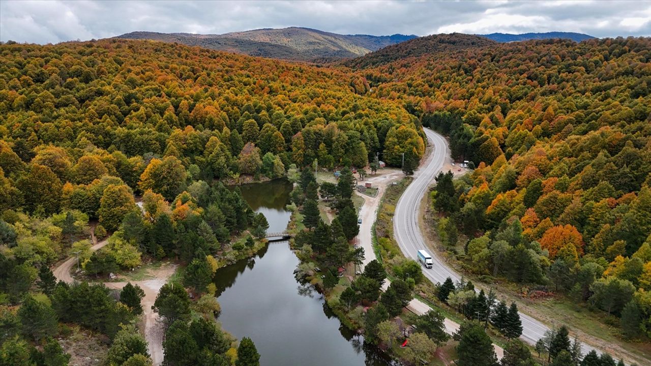Öte yandan, kayın, meşe ve çam ağaçlarının bir arada bulunduğu Domaniç Dağları'ndaki renk değişimi dron ile görüntülendi.