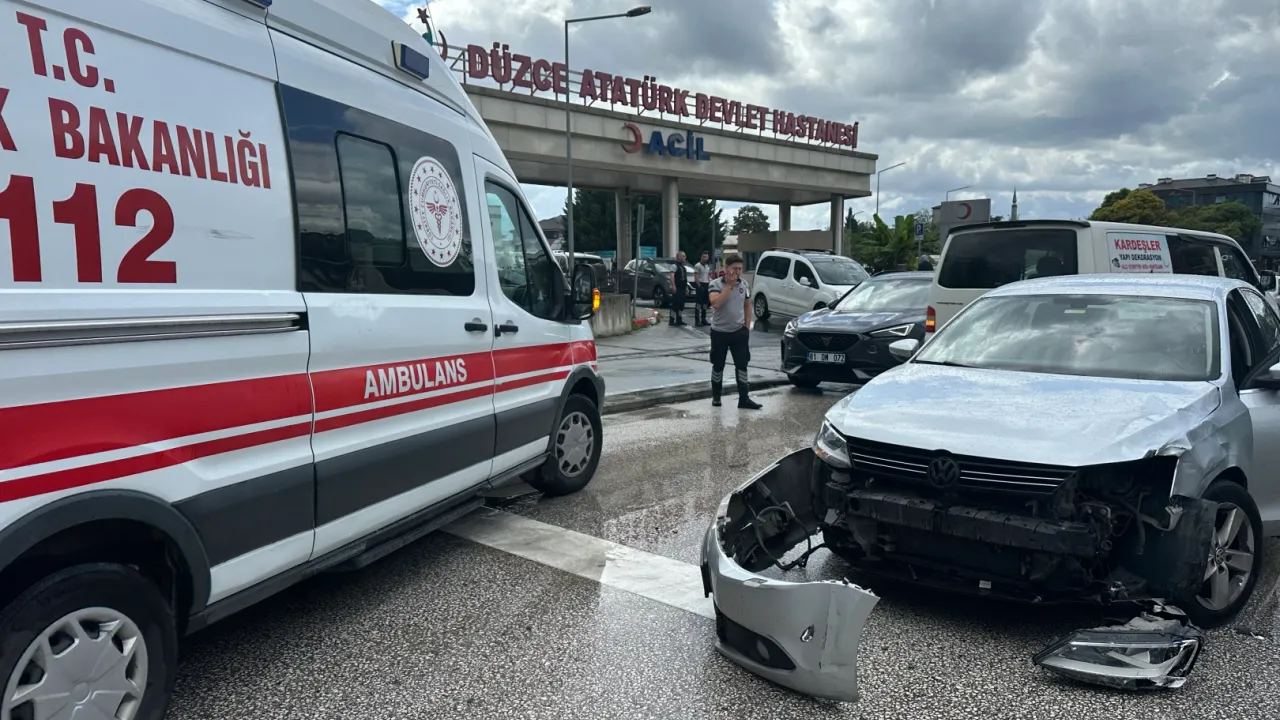 Düzce Atatürk Devlet Hastanesi önünde Mustafa A. yönetimindeki otomobil, Başar A.'ın kullandığı motosiklete çarptı. Motosiklet sürücüsü yaralı olarak hastaneye kaldırıldı. Kaza anı güvenlik kamerasına yansıdı ve polis soruşturma başlattı.Sefer DEMİR / DÜZCE (İGFA) - Alınan bilgiye göre Düzce Aziziye Mahallesi Şehit Ramazan Gel Caddesi üzerinde bulunan Düzce Atatürk Devlet Hastanesi Acil Servis önünde Acil'den çıkan Mustafa A. idaresindeki 34 ZC 0710 plakalı otomobil ile aynı istikamette şeridinde seyir halinde olan Başar A. yönetimindeki 81 ADM 209 plakalı motosiklet çarpıştı.