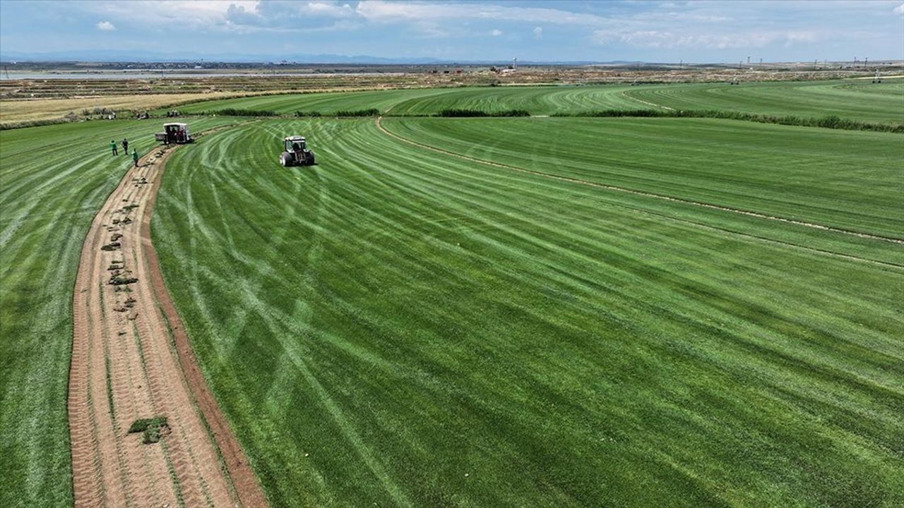 'Hasat sonrasında burada ürettiğimiz çimi yurt içi ve yurt dışından talep eden müşterilerimize veriyoruz. Rulo çim, park ve bahçeler, siteler, futbol ve golf sahaları, yol, şev, geniş ve yeşil alan çalışmaları gibi peyzajla ilgili olan alanlarda kullanılıyor.