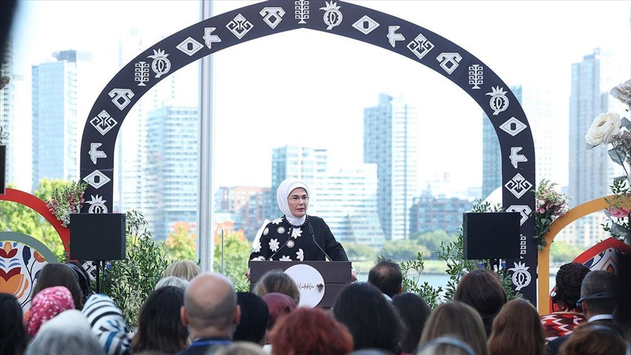 Programda konuşan Emine Erdoğan, Birleşmiş Milletler Genel Kurulu vesilesiyle davetlilerle buluşmaktan büyük mutluluk duyduğunu belirterek, dünyanın dört bir yanından gelenleri Anadolu'nun zengin mirasıyla tanıştırmak istediklerini söyledi.