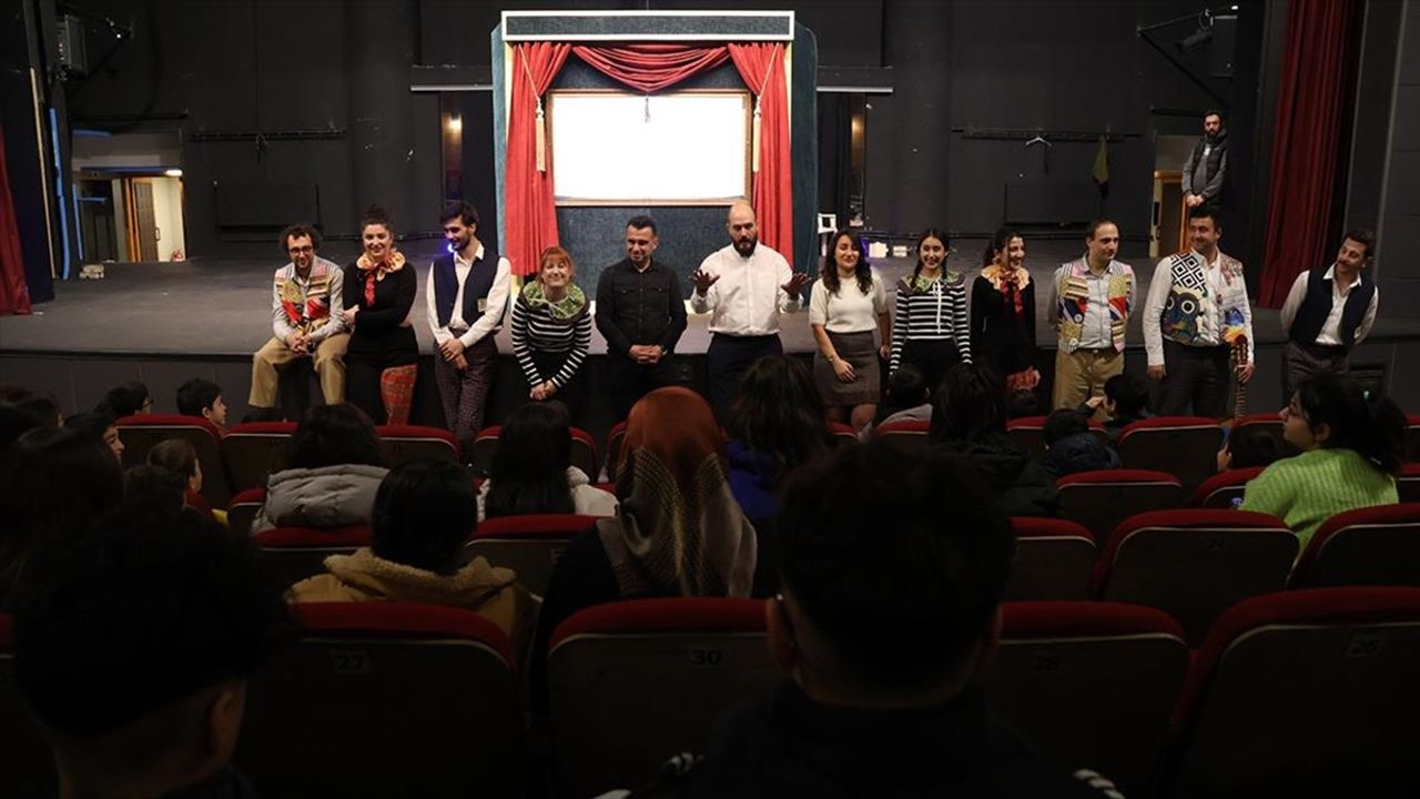 Burada hem sahne sanatlarını yakından tanıma hem de tiyatro dünyasını keşfetme fırsatı bulan çocuklar, Karagöz ve Hacivat gösterisi izledi.