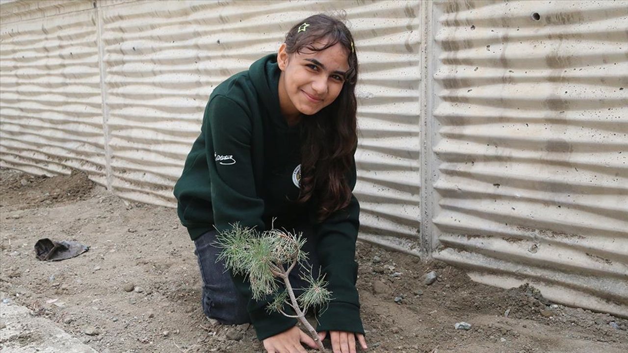 Öğretmenlerinin öncülüğünde çam, defne, limon ve mandalina fidanlarını toprakla buluşturan öğrenciler, eğitimlerini yerinde deneyimleme şansı buluyor.