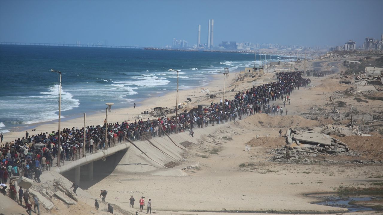 Filistinliler dönüş yolunda Gazze'nin orta ve güney bölgelerinden kuzeyine geçişi sağlayan Reşid Caddesi'ni kullanıyor.