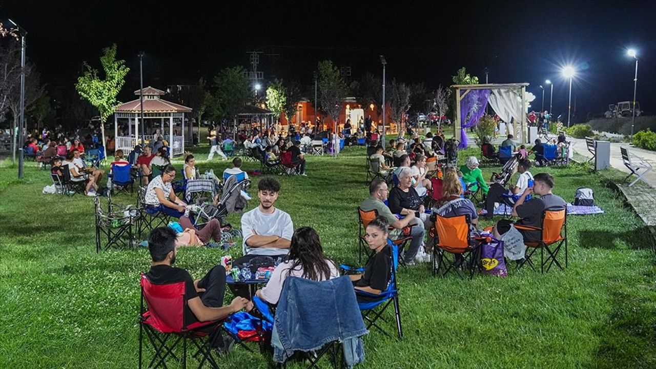Kamp sandalyeleri ve kilimlerle bahçeye gelen vatandaşlar, çardaklarda ve bahçe içinde oturarak gökyüzünde kayan yıldızları takip etti.