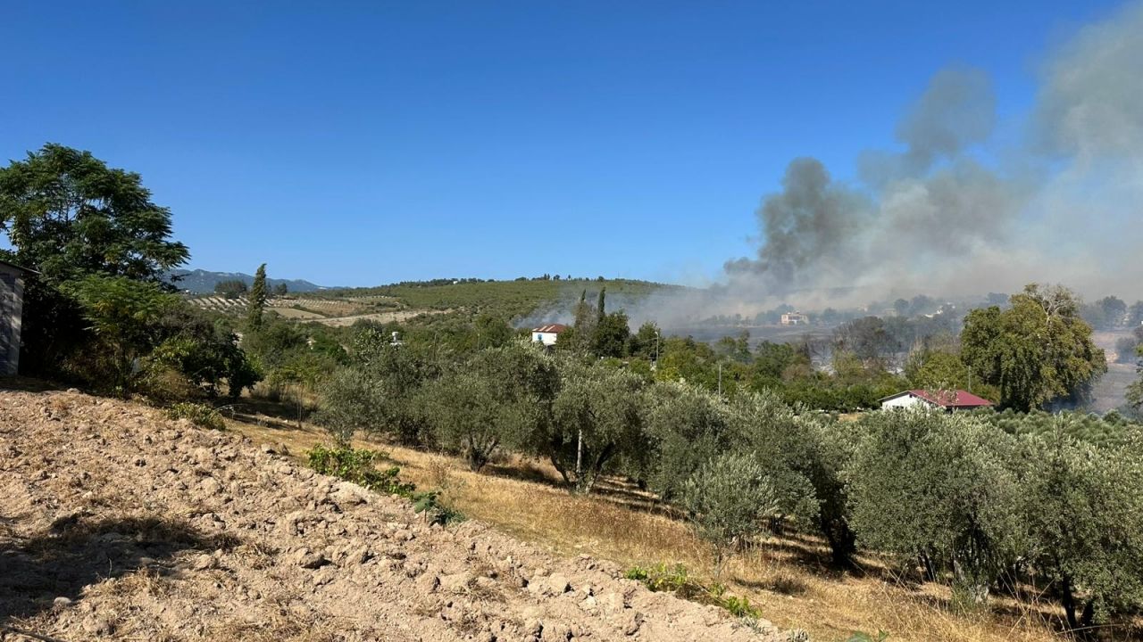 Akdam köyü yakınındaki tarlada henüz belirlenemeyen nedenle başlayan yangın, rüzgarın etkisiyle zeytin ağaçlarının bulunduğu alana yayıldı.