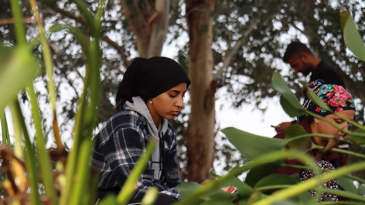 Toplanan bitkiler, Halk Eğitimi Merkezi'nde eğitim alan kadınlar tarafından temizlenip kurutuluyor.