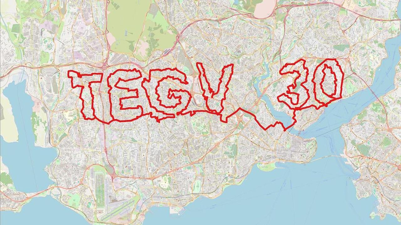 Rota, GPS teknolojisiyle 'TEGV 30' yazısını oluşturacak şekilde özel olarak planlandı. Koşucunun performansı, sanatçının kurguladığı bu metinsel kompozisyon aracılığıyla bir sanat eserine dönüştü.