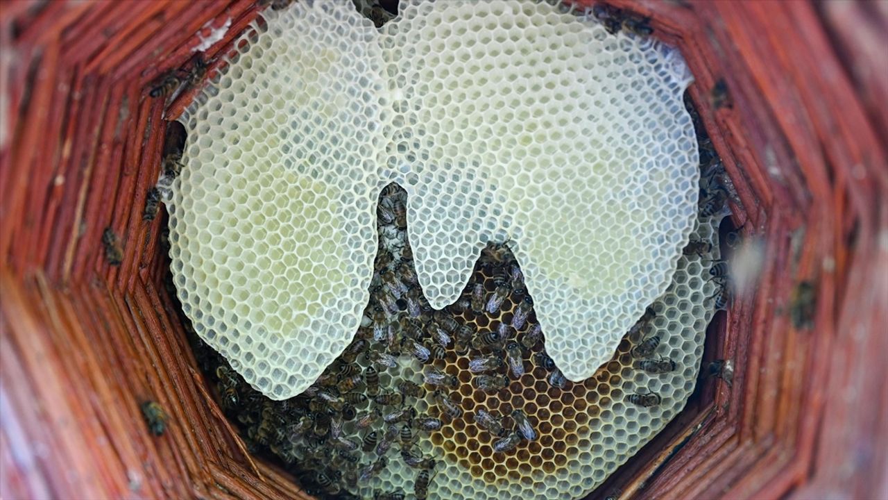 Söğüt dallarından yapılan ve etrafı çamurla sıvanan özel kovanların bırakıldığı 2 bin 700 rakımdaki zengin floraya sahip bölgelerde mevsimin ilk petekleri kovanlardan çıkarıldı.