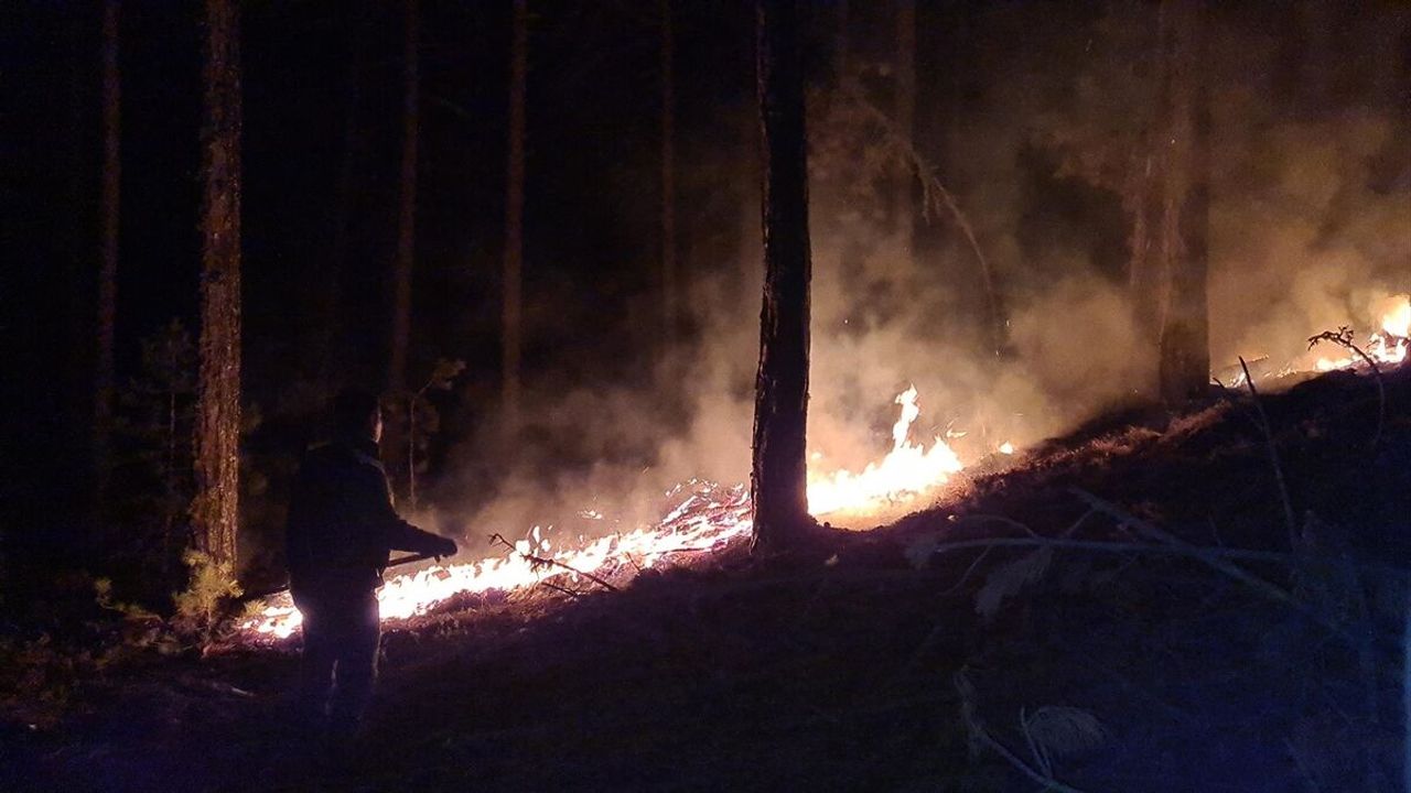 Köylüler ve orman personelinin yangını söndürmek için verdiği mücadele AA muhabiri tarafından görüntülendi.
