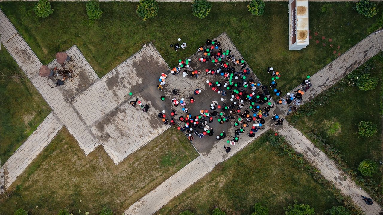 Kermeste Gazze, Doğu Türkistan ve Sudan'da yaşanan zulümler ve soykırıma dikkati çekmek için sessiz protesto yapıldı, balon uçuruldu.