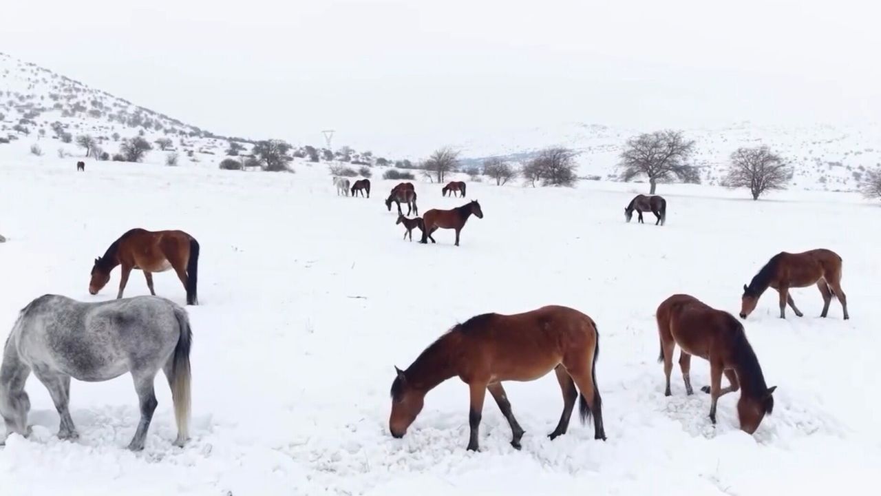 Malatya'da kış mevsiminin sert geçmesi ve yoğun kar yağışı nedeniyle yiyecek bulmakta zorlanan yılkı atları için doğa koruma ekipleri harekete geçti.
