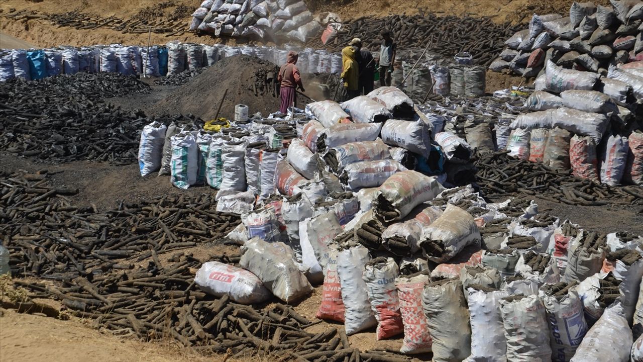 Kömür üreticisi Mehmet Şerif Sazan, mangal kömürünü torbalara doldurarak satışa hazır hale getirdiklerini söyledi.