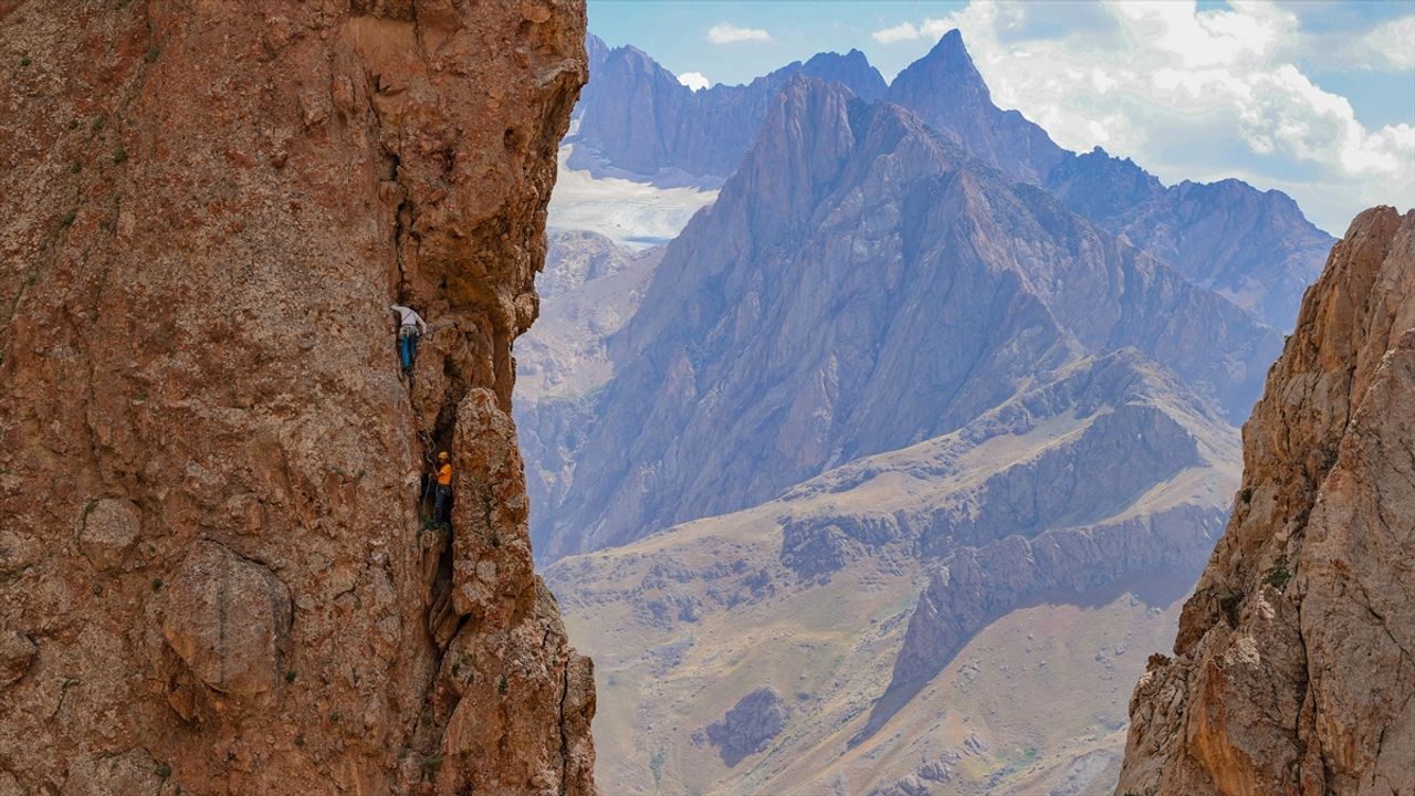 Farklı dağ ve kayalarda tırmanış yapıp yeni rotalar belirlemek için Hakkari'ye gelen milli dağcılar Fındık ve Aktuyun, Cilo Dağcılık ve Doğa Sporları Kulübü Başkanı Hacı Tansu ile Cennet Cehennem Vadisi'ne çıktı.