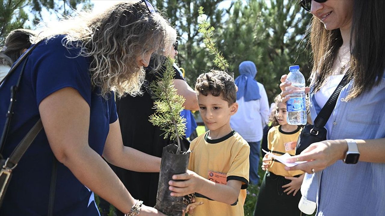 Başkentte Eryaman Şehit Rıfat Çelik İlkokulu'ndaki etkinliklerde, minik öğrenciler velileriyle birlikte öğretmenlerinin rehberliğinde kendilerine özel temin edilen fidanları dikti, onlara can suyunu verdi.