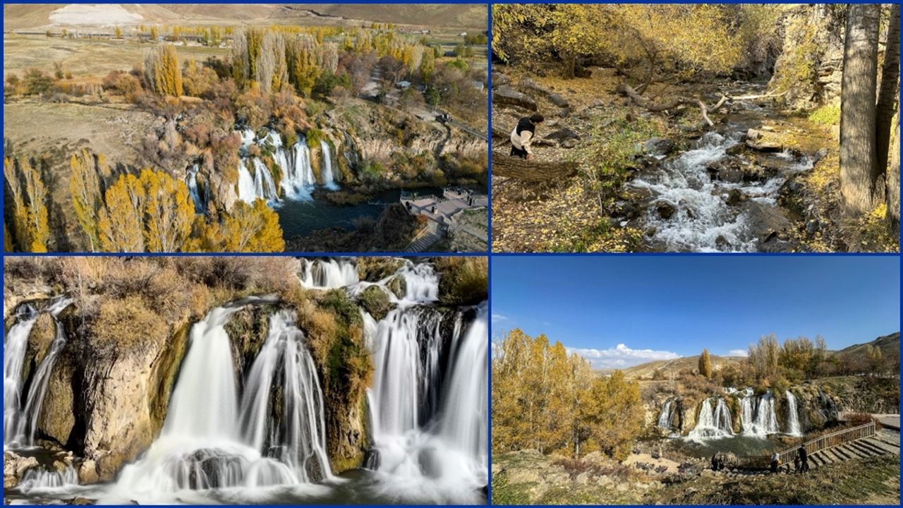 VAN (AA) - Çevresindeki ağaçların sararmasıyla sonbaharın tüm renklerinin görülebildiği şelalenin bulunduğu alana gelenler, güzel manzarayı cep telefonlarıyla görüntülüyor.