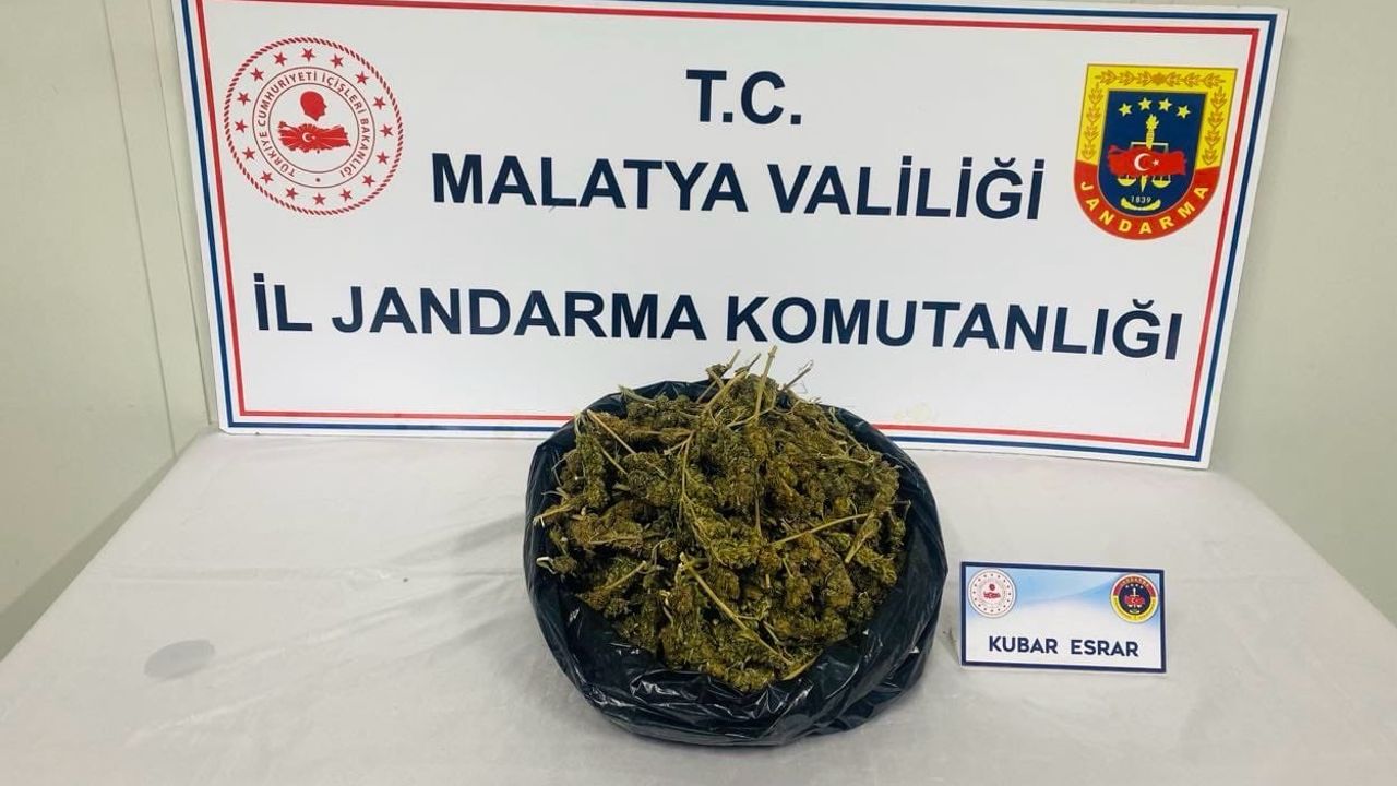 İl Jandarma Komutanlığı Narkotik Suçlarla Mücadele Şube Müdürlüğü, KOM Şube Müdürlüğü ve Battalgazi İlçe Jandarma Komutanlığı ekiplerince yürütülen çalışmalar kapsamında, 1 kilo 500 gram esrar maddesi ele geçirildi. Operasyon kapsamında 1 şüpheli şahıs yakalanarak gözaltına alındı.