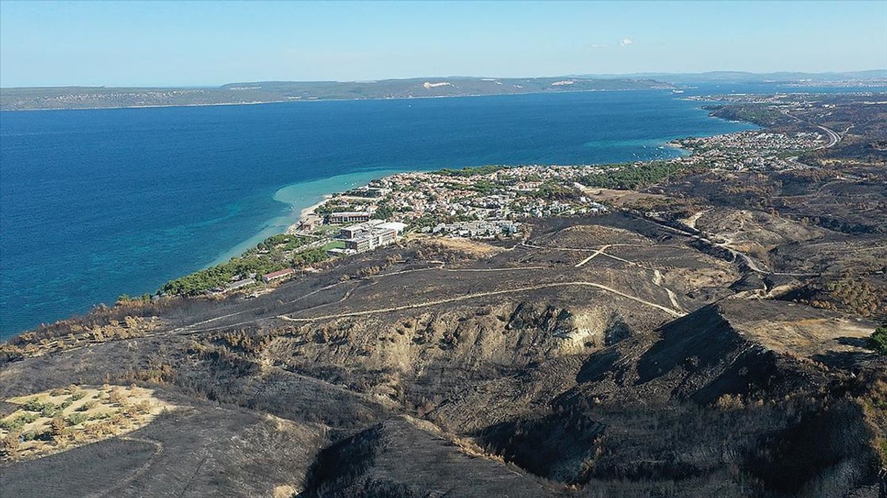 Çanakkale'de üniversite kampüsüne kadar ilerleyen yangın sonrası tam yanmayan ağaçların simsiyah bir renge büründüğünü hatırlatan Aslan, şöyle devam etti: