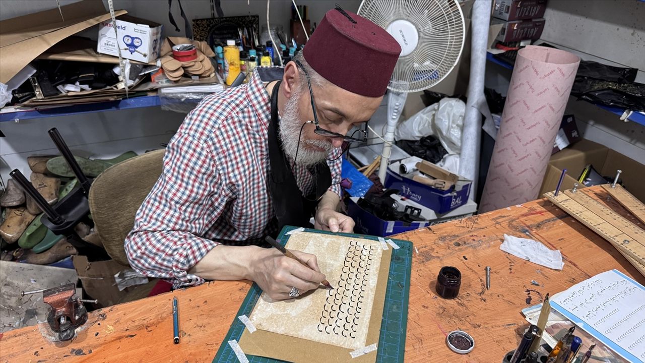 Hastalığına rağmen işini bırakmayarak müşterilerinin taleplerini karşılamaya gayret gösteren Sevim, dükkanda boş kaldığı zamanlarda hat yazımını sürdürüyor.
