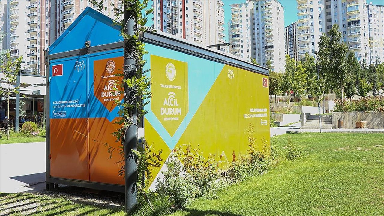KAYSERI (AA) - Kayseri'nin Talas ilçesinde olası bir deprem sonrası müdahalede bulunmak amacıyla ilçedeki parklara 'acil durum konteynerleri' konuşlandırıldı.