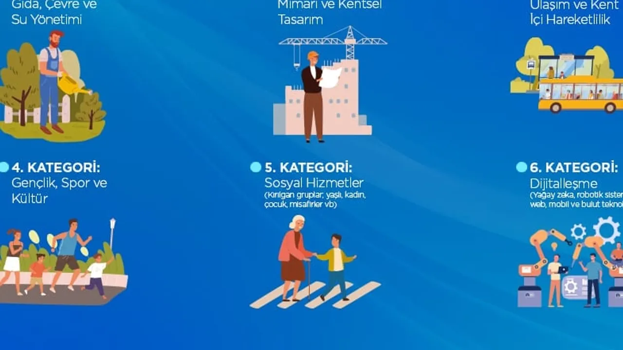 Yarışma “Gıda, Çevre ve Su Yönetimi, Mimari ve Kentsel Tasarım, Ulaşım ve Kent İçi Hareketlilik, Gençlik, Spor ve Kültür, Sosyal Hizmetler ve Dijitalleşme” olmak üzere toplam 6 farklı kategoride gerçekleştirilecek.