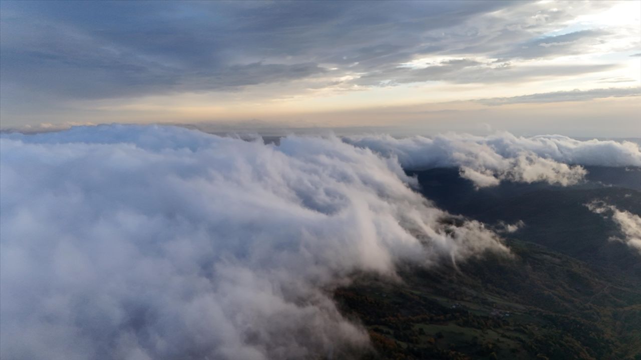 Dağda sabah oluşan yoğun sis, güzel görüntü oluşturdu. Sisin adeta denizi andıran yoğunluğu, dronla görüntülendi.