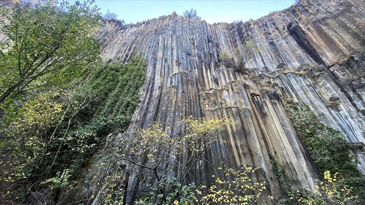 SINOP (AA) - Birbiri ardına sıralanmış 3 vadiyi kapsayan 10 hektarlık alandaki bazalt kayalıkları, boyları 40 metreyi bulan altıgen prizma şeklindeki büyük sütunlardan oluşuyor.