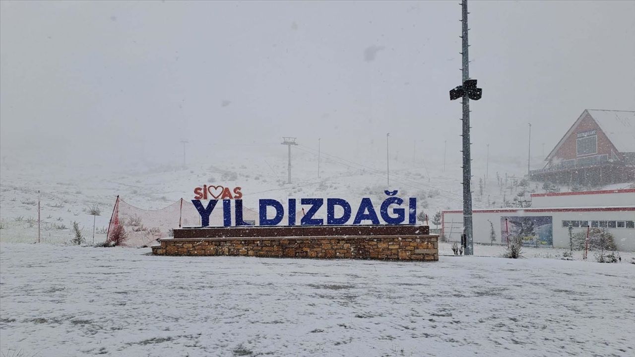 SIVAS (AA) - Kentin kış turizm merkezi Yıldız Dağı'nda başlayan kar yağışı aralıklarla etkili oldu.