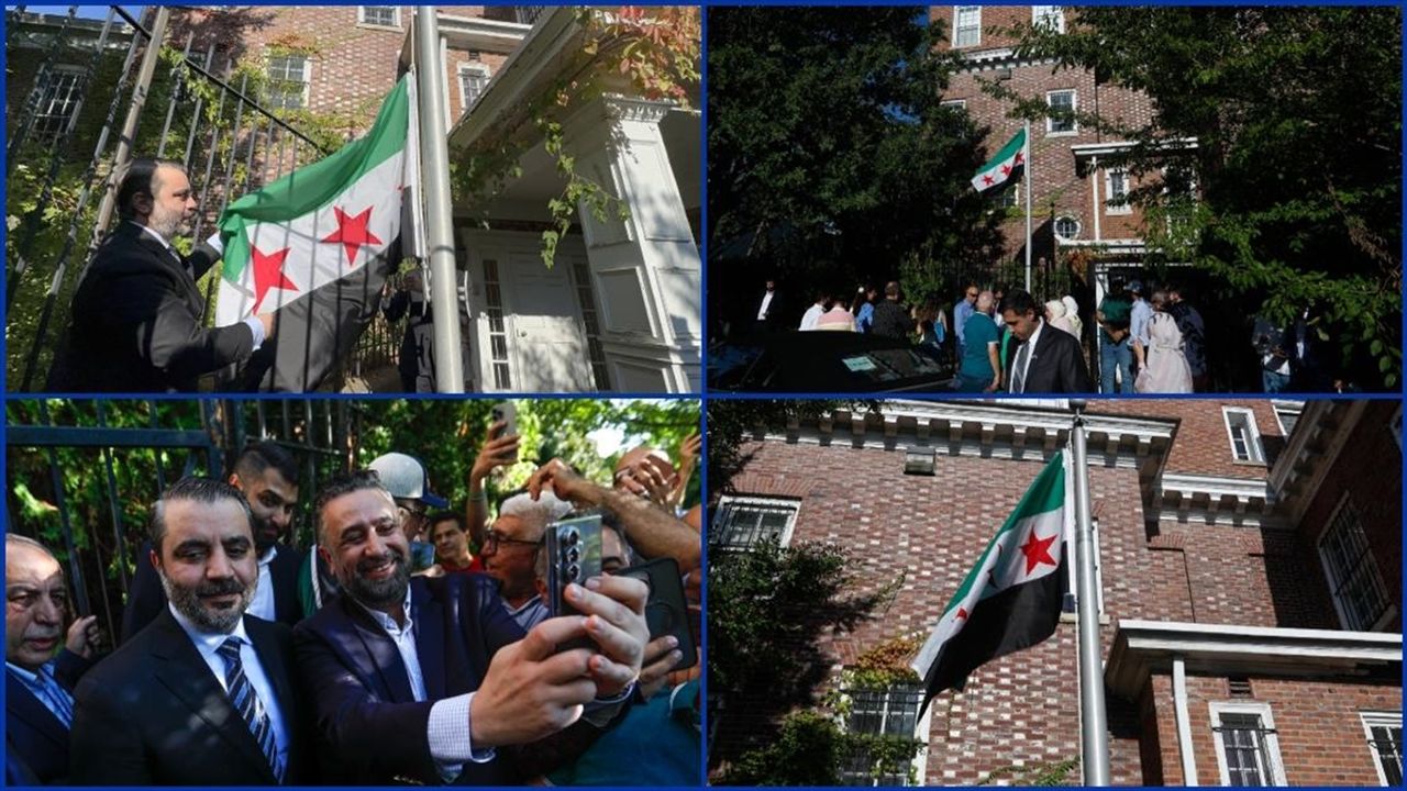 ŞAM (AA) - Washington'da 18 Mart 2014'te kapatılan büyükelçilik binasında, Suriye Dışişleri Bakanı Esad Hasan Şeybani, Suriye Arap Cumhuriyeti bayrağını göndere çekti.