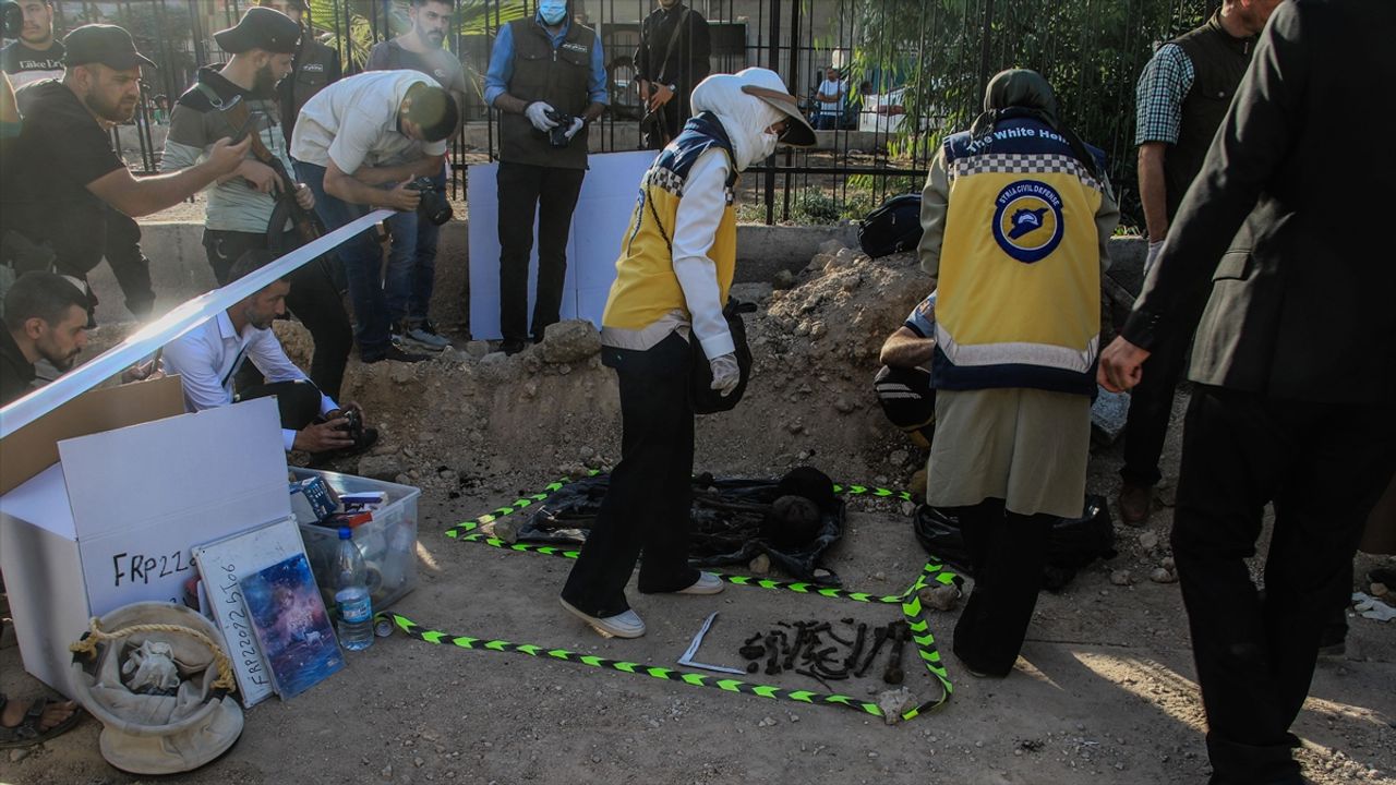 ŞAM (AA) - Şam kırsalındaki Duma'nın doğusunda Tel alsawan köyünde yürütülen kazı çalışmalarında kadın ve çocuklara ait ceset kalıntıları bulundu.