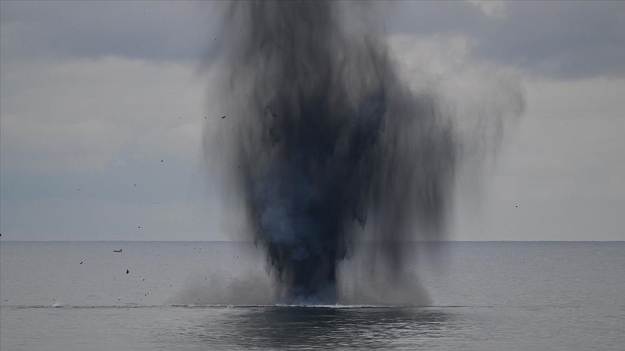 Sahil Güvenlik Komutanlığının botu ile Karadeniz açıklarına çekilen insansız deniz aracının, bir süre sonra patlatıldığı görüldü.
