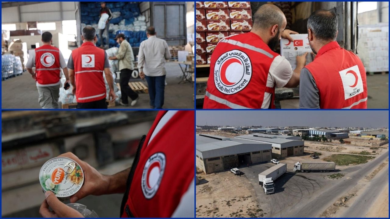 İDLIB (AA) - Türk Kızılay tarafından hazırlanan ve içerisinde gıda kolisi, hazır gıda, su ile çocuk bezi bulunan 2 tır insani yardım malzemesi, Suriye Kızılayına teslim edildi.
