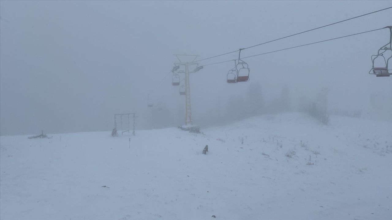 Yağış nedeniyle bölgedeki otel ve teleferik tesislerinin çatıları ile pistler beyaz örtüyle kaplandı.